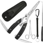 Price: (as of – Details) Größe:16.5cm/6.5zoll & 12.7cm/5zoll & 16.5cm/6.5zoll 3-piece multifunctional fishing pliers set: includes hook remover fishing pliers and materials pike pliers and line cutter fishing zangea & lanyard & nylon sheath. Fishing pliers integrate multiple functions such as folding knife and fish scaler. The curved scissors can be used in small spaces [More]