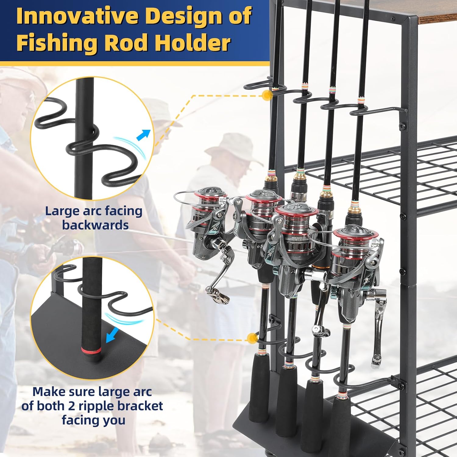 Perfect fishing gift for men: this floor fishing rod stand on wheels is perfect for any style of home decoration. Help you organize your fishing rod and tackle in your garage, shed or other indoor or outdoor storage area. Perfect for fishing lovers, simple and practical, the best fishing gift for men, women, dads, husbands and friends on special days!