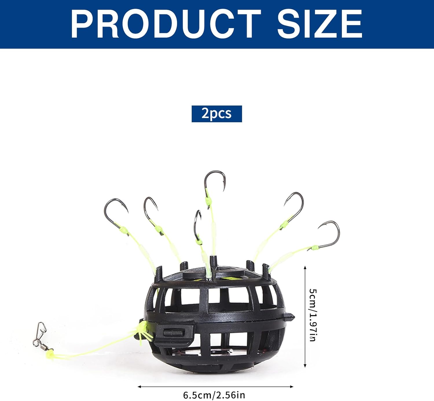 Fishing accessories: catch several fish with one throw, improve efficiency when fishing and avoid the problem of line tangling. The bait cage is easy to open and close, so you can install the hooks quickly and without complicated procedures. Suitable for anglers of all experience levels
