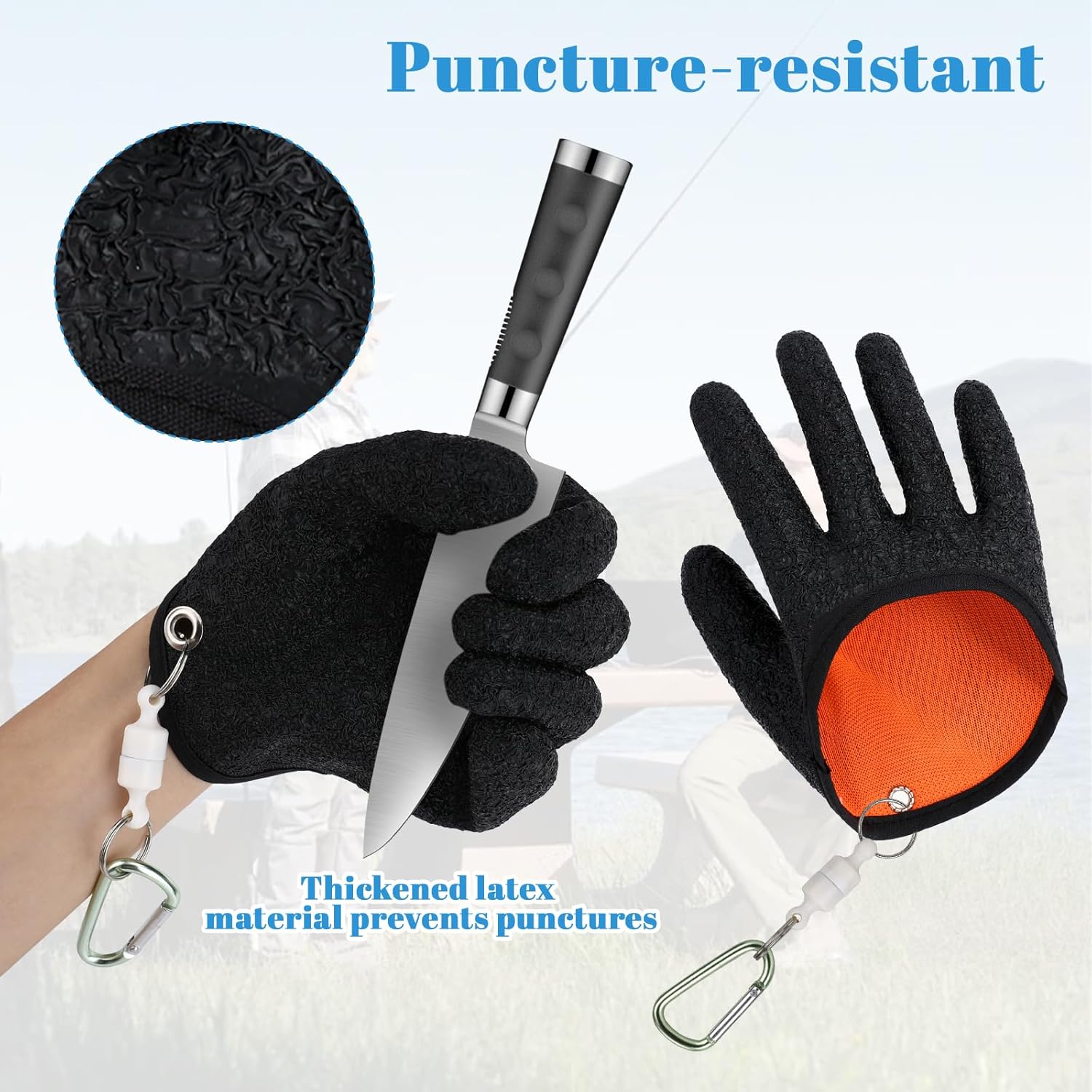 Waterproof: these waterproof gloves reliably keep water away, your hands stay dry even if you work in the water for a long time or treat fish. The waterproof material also prevents dirt and moisture from entering, makes the gloves easy to clean and maintain – a practical feature for fishing accessories