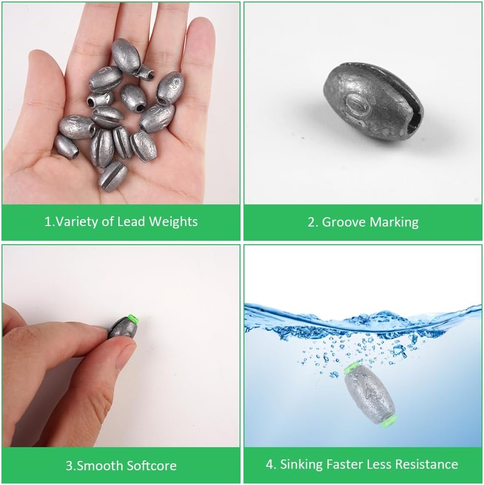 Practical Design Our drop lead adopts olive shaped, streamlined design, which can effectively reduce the resistance in the water, so that the bait flows through the water more smoothly and achieve a longer casting distance. The fast and quiet sinking helps to keep the water calm, drastically reduce the disturbance of the fish and improve camouflage and success when fishing.