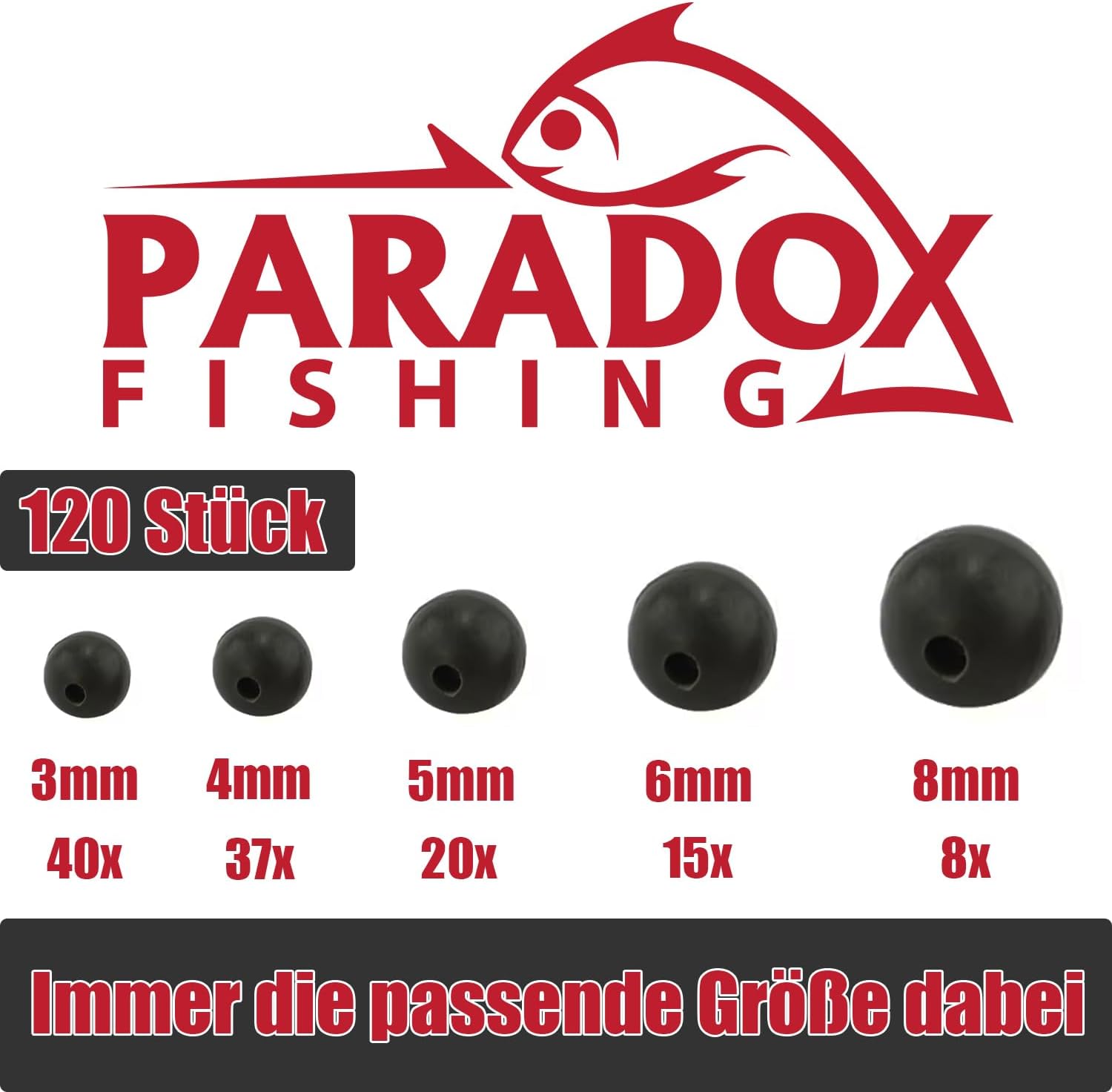 Paradox Fishing Rubber Beads Set 3 mm – 8 mm I 120 Pieces I Rubber Beads Fishing Stopper Beads for Fishing Beads Fishing Accessories – Perfect with Rubber Stopper Fishing