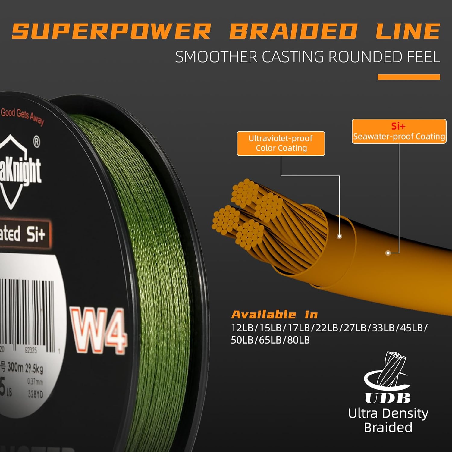 STRONG KNOT STRENGTH – Advanced ultra density molded technology gives the W4 series a thinner diameter with the same breaking strength, high quality UHMWPE fiber provides great softness and break resistance, allowing you to easily tie stronger knots. You can even tie an improved clinch knot.