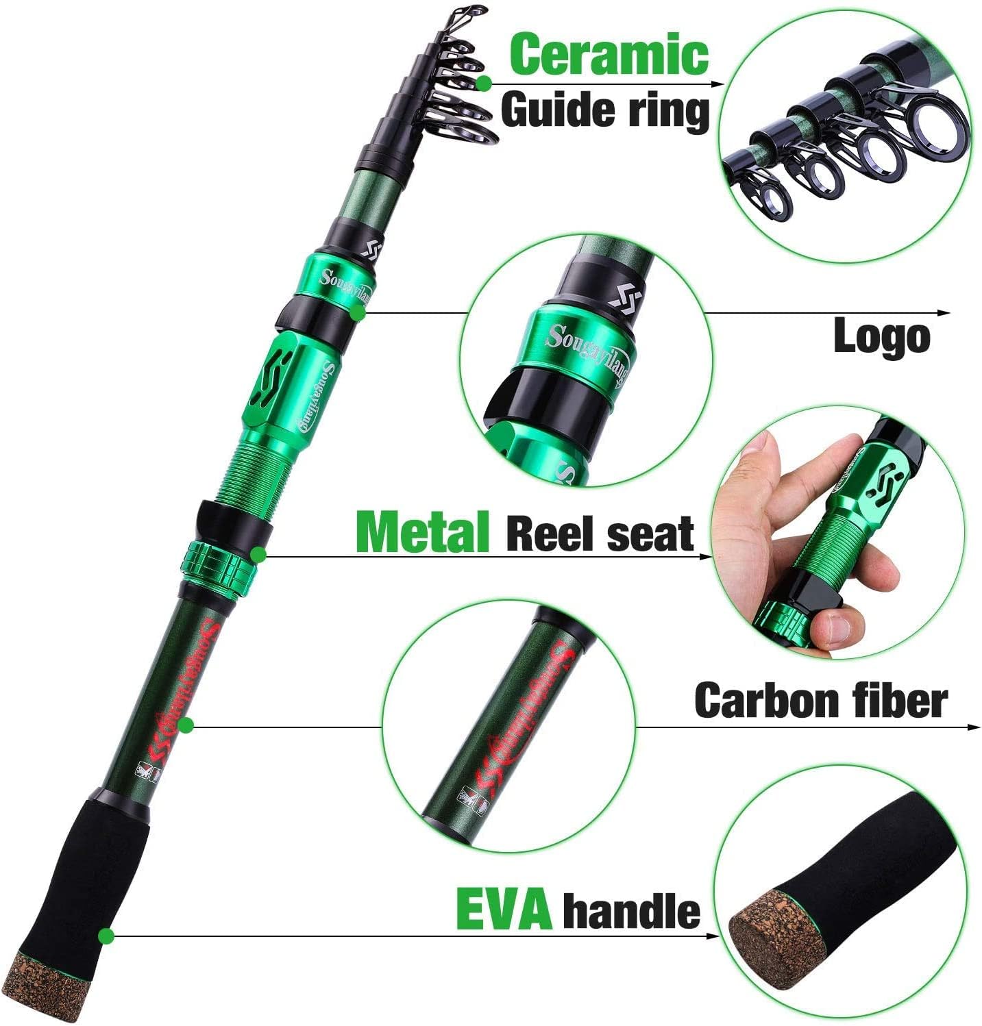 Sougayilang Telescopic Fishing Rod Portable 24 Ton Carbon Fiber CNC Machined Reel Seat Comfortable EVA Handle Travel Fishing Rod for Bass Trout Fishing