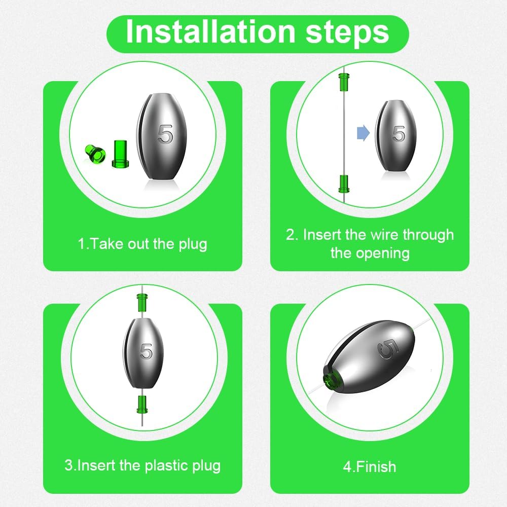 Easy to use: the middle green plastic part is removable, if you replace other lead fishing set, simply move the green part at both ends for quick and easy access. The weights are clearly labelled on the surface of the lead, so you can find what you want faster.