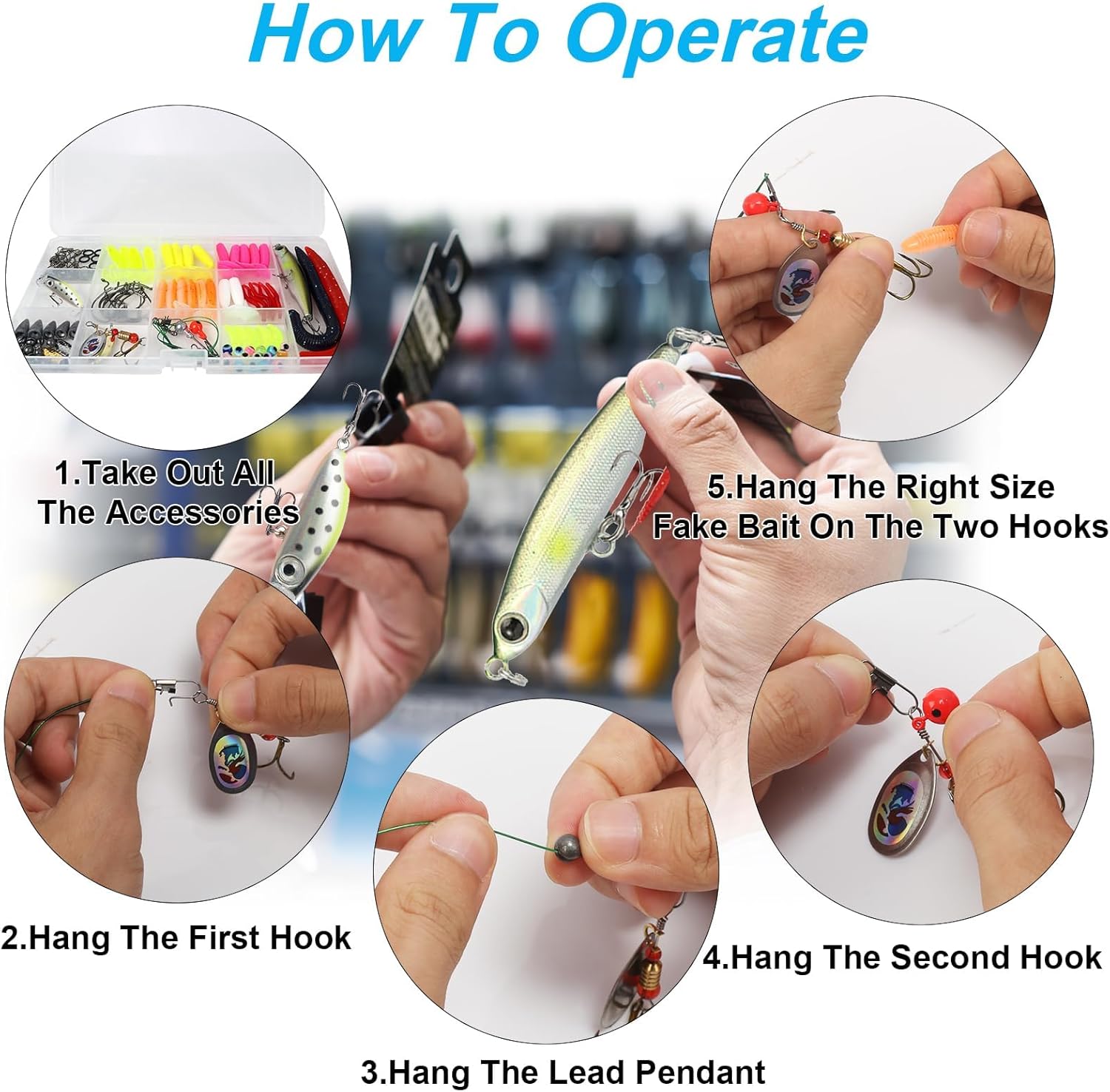 VERSATILE FISHING LURE SET Our fishing lure set includes a variety of lures such as rubber fish, hooks, fishing weights, fishing snaps, spoon, spinners, frog lures and more. Everything a fisherman needs in a handy storage box.